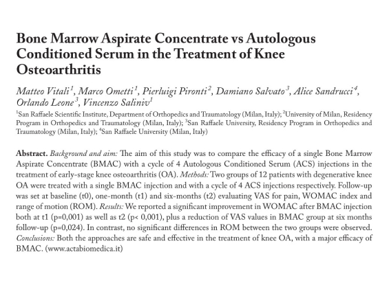 Intra-articular Injection of Bone Marrow Aspirate Concentrate for Knee Osteoarthritis